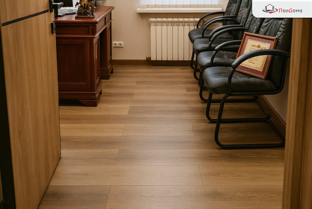 Офис получил современный, практичный и износостойкий пол. Покрытие выдерживает повседневные нагрузки, устойчиво к типовым загрязнениям, легко моется и визуально расширяет пространство благодаря натуральной фактуре. Сроки соблюдены, помещение сразу готово к эксплуатации.